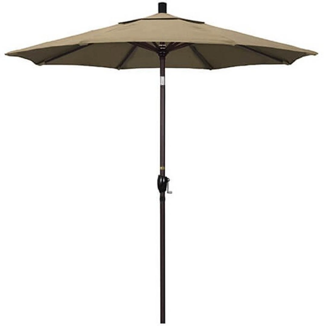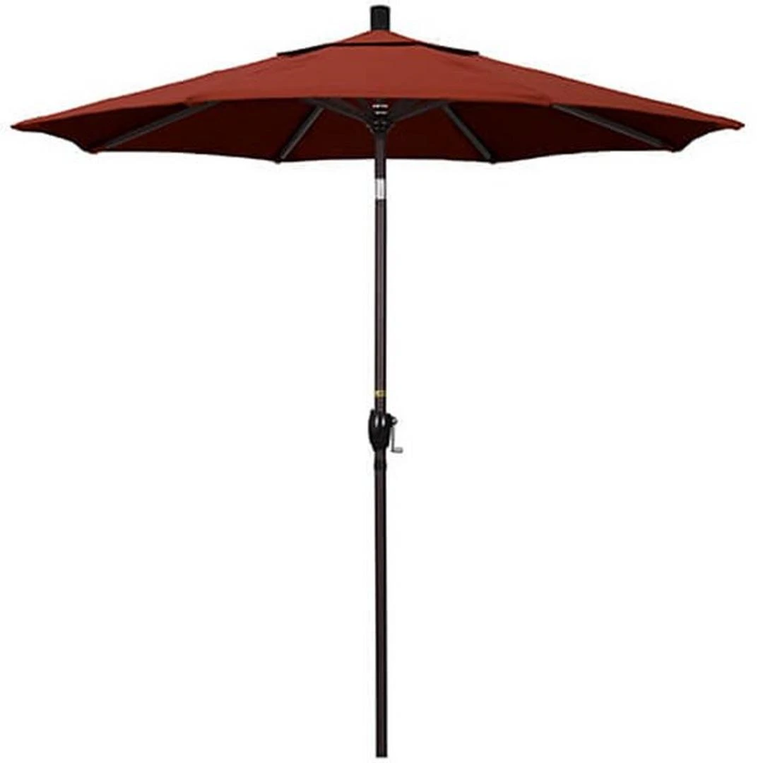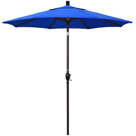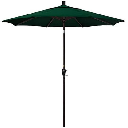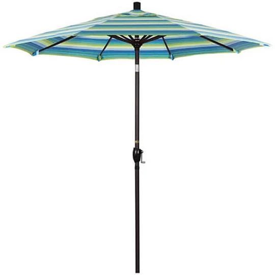 These umbrellas measure 7.5 feet in diameter and feature an attractive bronze aluminum pole with matching ribs with Sunbrella® fabric umbrella material. Sunbrella® is the highest grade fabric over all other outdoor-use fabrics, durable and the most UV resistant against color fade with a 5 year anti-fade resistant warranty for many years of use. Raising and lowering is made easy by way of a crank handle, and the pole design offers a push button tilt option.