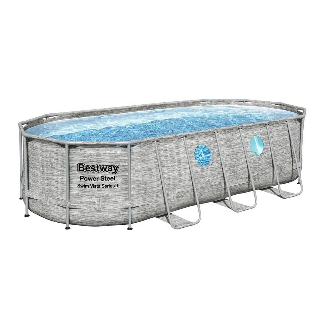 The Bestway Power Steel Soft Sided Above Ground Pool is easy to set up and built to last. The corrosion-resistant steel frame is equipped with Bestway’s Seal & Lock System for a sturdy and secure pipe connection. The Tritech pool liner is made of durable material that is reinforced for strength and puncture-resistance. Plus, the outside of the liner is printed with a realistic stone pattern to create a perfect fit in your beautiful backyard.