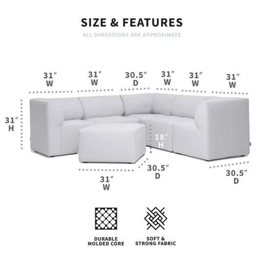 - Dimensions – Corner Chair: 31″W x 30.5″D x 31″H | Weight: 21.7 lb