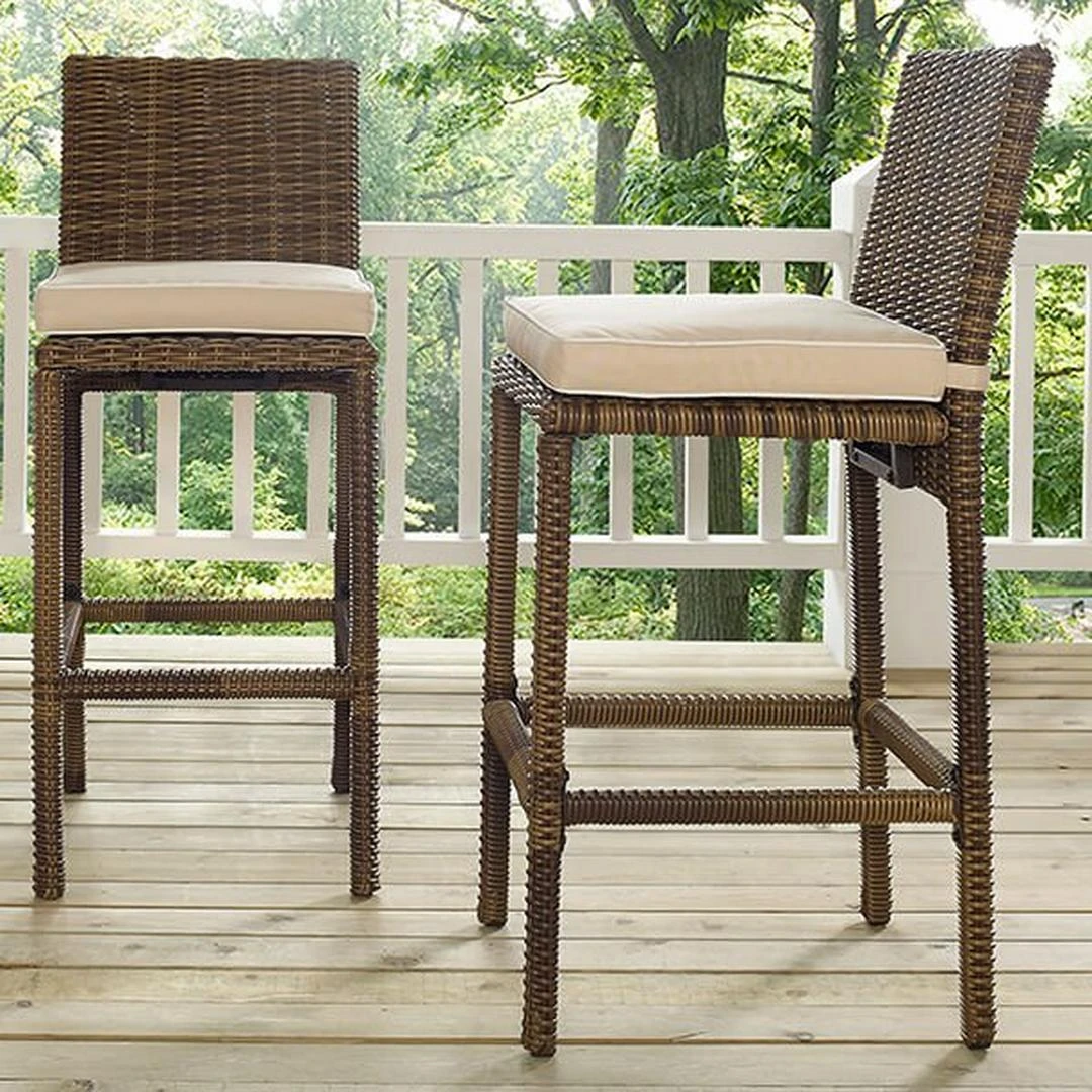 Crosley Bradenton Bar Stools are made with heavy gauge powder coated steel, wrapped in luxurious resin rattan wicker for a timeless appeal and durability.