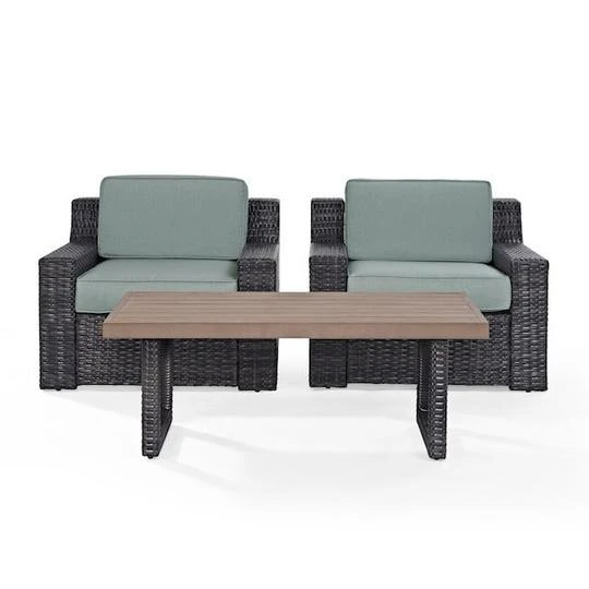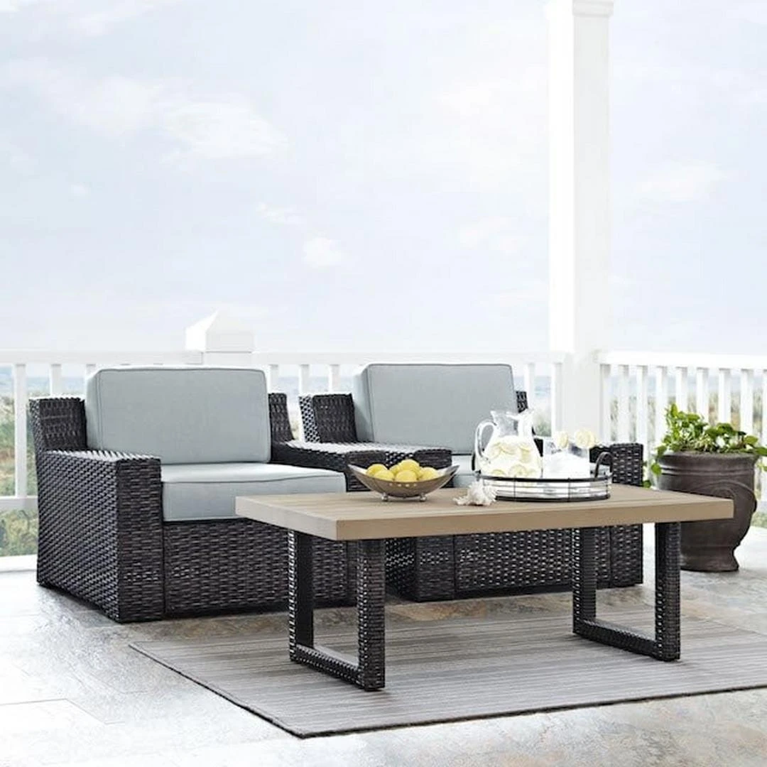 Enhance your backyard or patio with a Beaufort Outdoor Wicker Seating Set from Crosley Furniture. Made from UV-resistant outdoor resin wicker, these furniture pieces are made to last! The seats also feature fade-resistant cushions and resilient foam cushion inserts. The modern coffee table features an angular base, while the top features all-weather faux wood planks with embossed grain details. Live your life outside with the Crosley Beaufort Outdoor Wicker Seating Set.