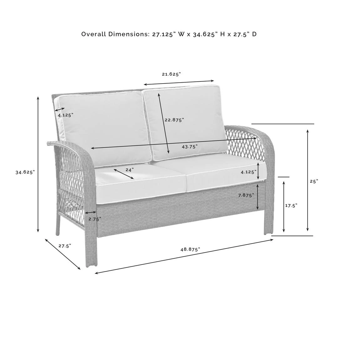 - Loveseat Dimensions: 34.65″H x 48.88″W x 27.5″D