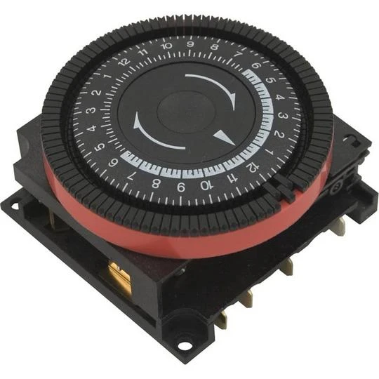 Diehl 24 hr spa time clock. Diehl 800 series electromechanical time clock TA4065 is a 240V, 15amp panel mount timer for bath, whirlpool, spa and hot tub controls (and other uses too!). 4 terminal tabs on the bottom on this SPST timer. Also available in 120V, see part number TA4071. Orange colored bezel behind timer dial.