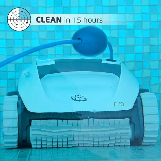 The Dolphin E10 Robotic Pool cleaner makes cleaning debris by hand a thing of the past by doing all the hard work for you. Dolphin Robotic Pool Cleaners provide pool owners with a hassle-free cleaning solution of unmatched performance and longevity. The Dolphin E10 Robotic Above Ground Pool Cleaner is no exception.