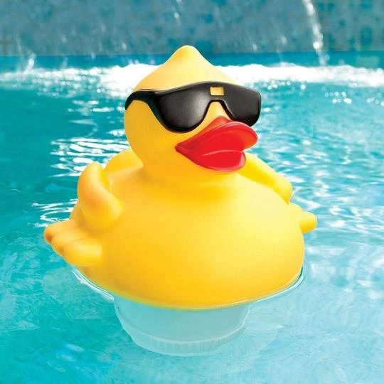 Fun and functional, the Solar Lighted Derby Duck Chlorinator uses solar energy to brightly illuminate at night, acting as both a chlorine tablet dispenser and a pool light. It features a solar powered, rechargeable battery and light sensor, built with an expandable basket that holds 3″ chlorine tablets. With an adjustable dispensing rate that depends on the chlorine needed, it is an ideal way to sanitize your pool and keep it lit for safety and ambiance. Measures 10″ (L) x 8″ (W) x 11.75″ (H).