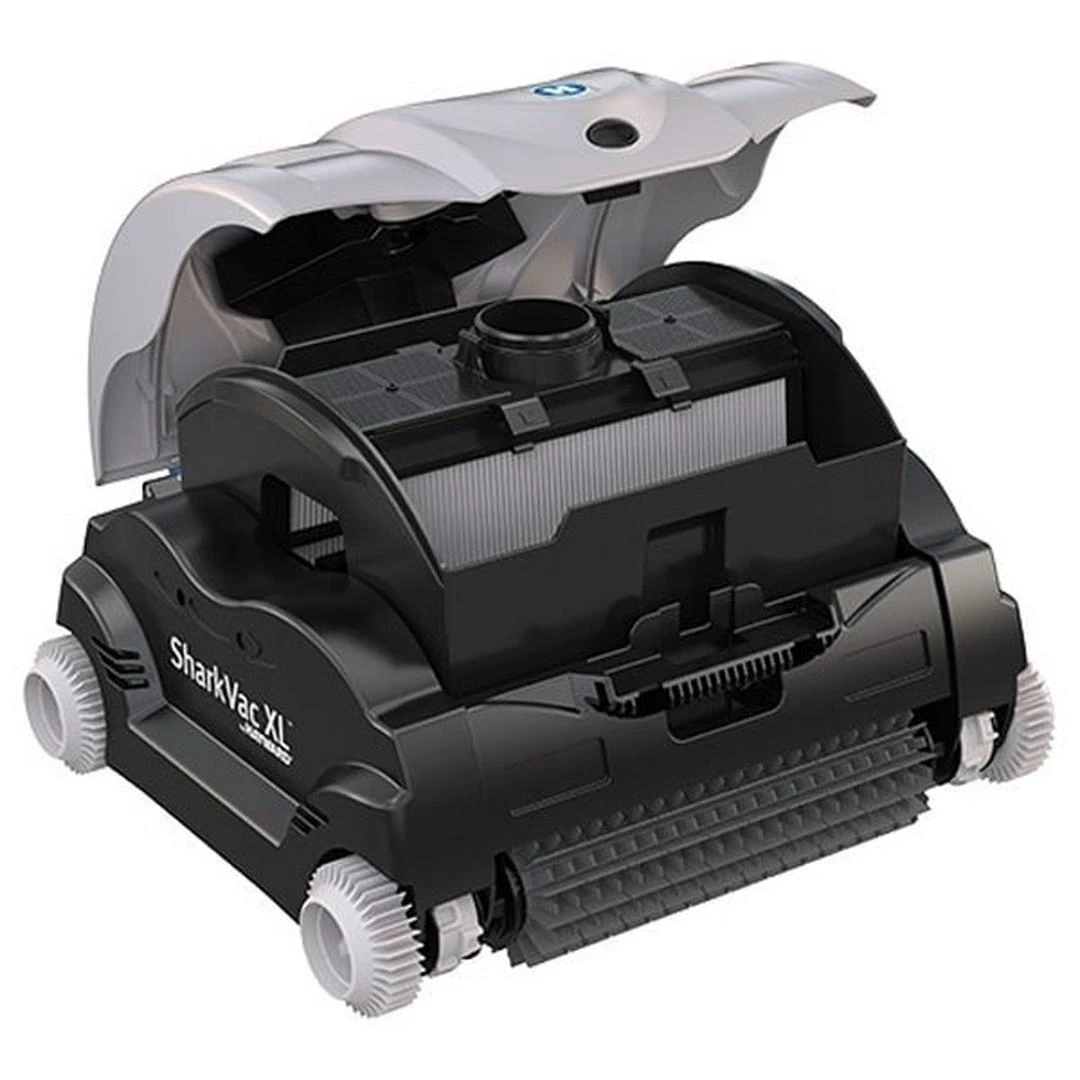 The Hayward SharkVAC XL Robotic Pool Cleaner cleans the pool floor and wall of any in-ground pool up to 20ft x 40ft. The SharkVAC XL features a low-profile design and two easy top-access filters which allows fast removal of any debris caught. This robotic cleaner uses 94% less energy than most traditional pool cleaners and can be compared to the energy used by a standard light bulb. This pool cleaner cleans all residential surfaces within its three hour cleaning cycle and runs separately from your existing filtration system.