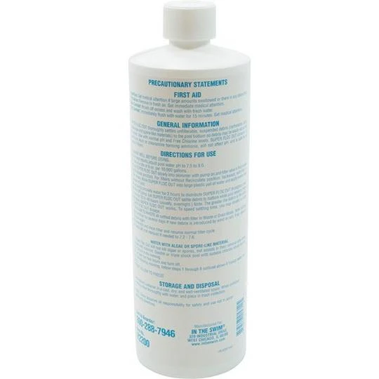 In the Swim’s Super Floc Out is a liquid flocculant used settling suspended particles to break apart your pool’s surface tension. Perfect for removing dead algae and non-living organic contaminants that may be lurking in your pool. When the waste settles, they will drop to the bottom of your pool allowing for easy access for a slow vacuum of the leftovers residue. It will be the consistency of wet toilet paper, a gel like substance almost, coated at the bottom.
