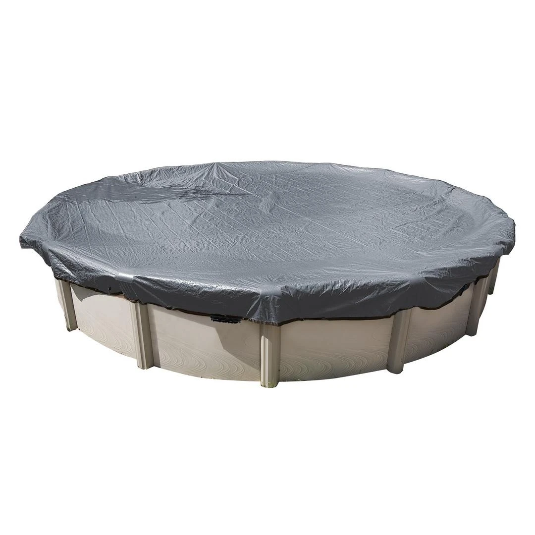 Each round winter cover includes a winch and cable to create a tight seal around your above ground pool. These covers also include metallic grommets around the perimeter of the material to attach optional water bags (sold separately). We also recommend applying an air pillow (sold separately) under the center of your winter cover to help push water and snow melt to the edges of your pool. Swimming pool air pillows also help absorb the pressure and weight from precipitation.