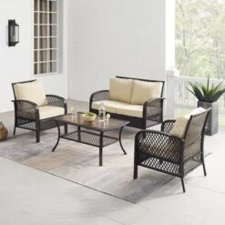 Crosley – Tribeca 8-Piece Outdoor Wicker Conversation Set, Brown